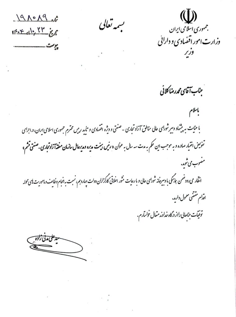 مدیرعامل سازمان منطقه آزاد قشم منصوب شد